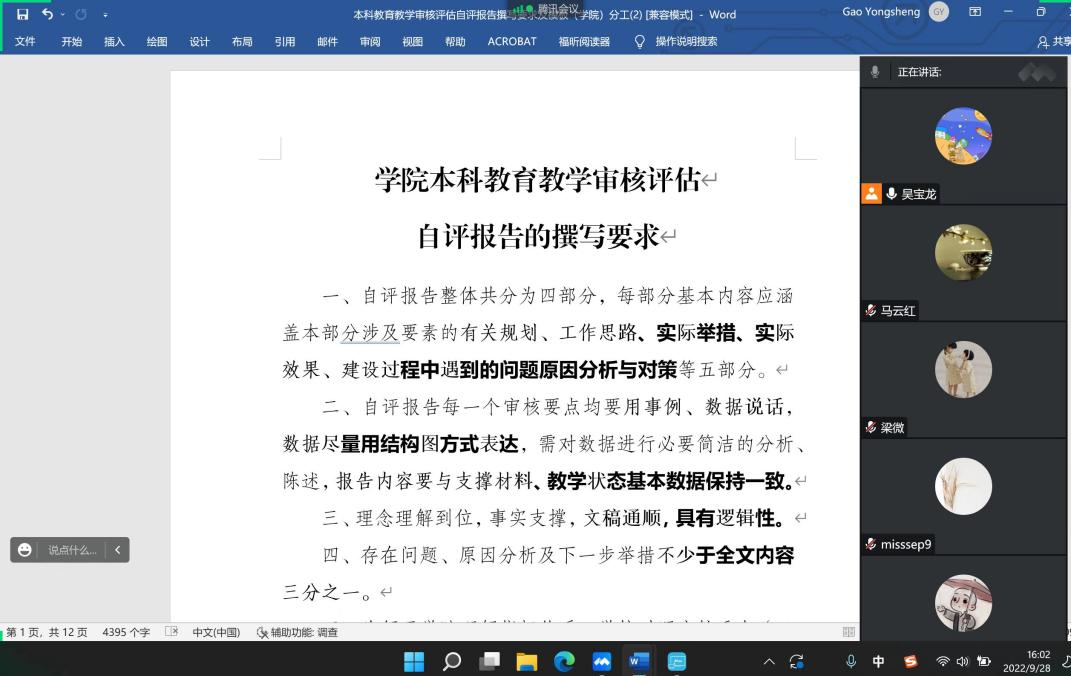 为贯彻落实《英国上市公司官网365本科教育教学审核评估工作方案》要求,切实做好新一轮本科教育教学审核评估工作,9月28日下午,英国上市公司官网365线上、线下同步召开本科教育教学审核评估自评报告撰写动员会。学院党委书记侯俊、副书记高敏(线上)、副院长高永胜、发展战略中心成员、教师代表、辅导员代表、党务秘书、人事秘书、外事秘书、本科教学秘书等参加会议。