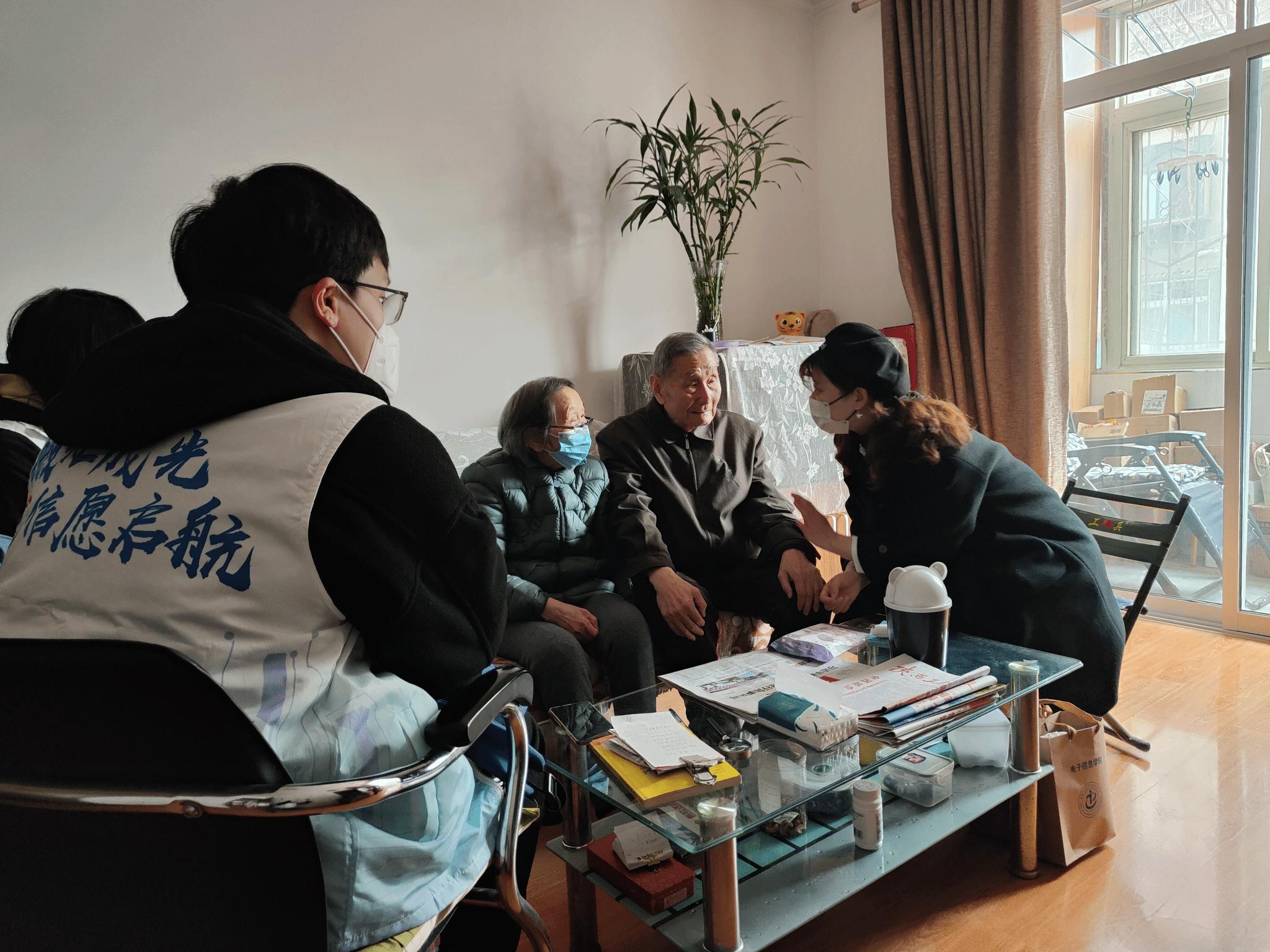 随后四名志愿者又前往了王奶奶家。王奶奶患有轻微的阿尔兹海默症,有儿孙常年陪伴照顾,因此志愿者们选择与王奶奶谈谈心,关心老人的身体,询问生活近况。递过爱心围巾时,王奶奶一家表达了衷心的感谢。一番交流下来,志愿者们发现王奶奶虽然已年过耄耋,却也有一颗年轻的心,网上充电费、网购可谓是样样精通,堪称是是一位时尚小达人。