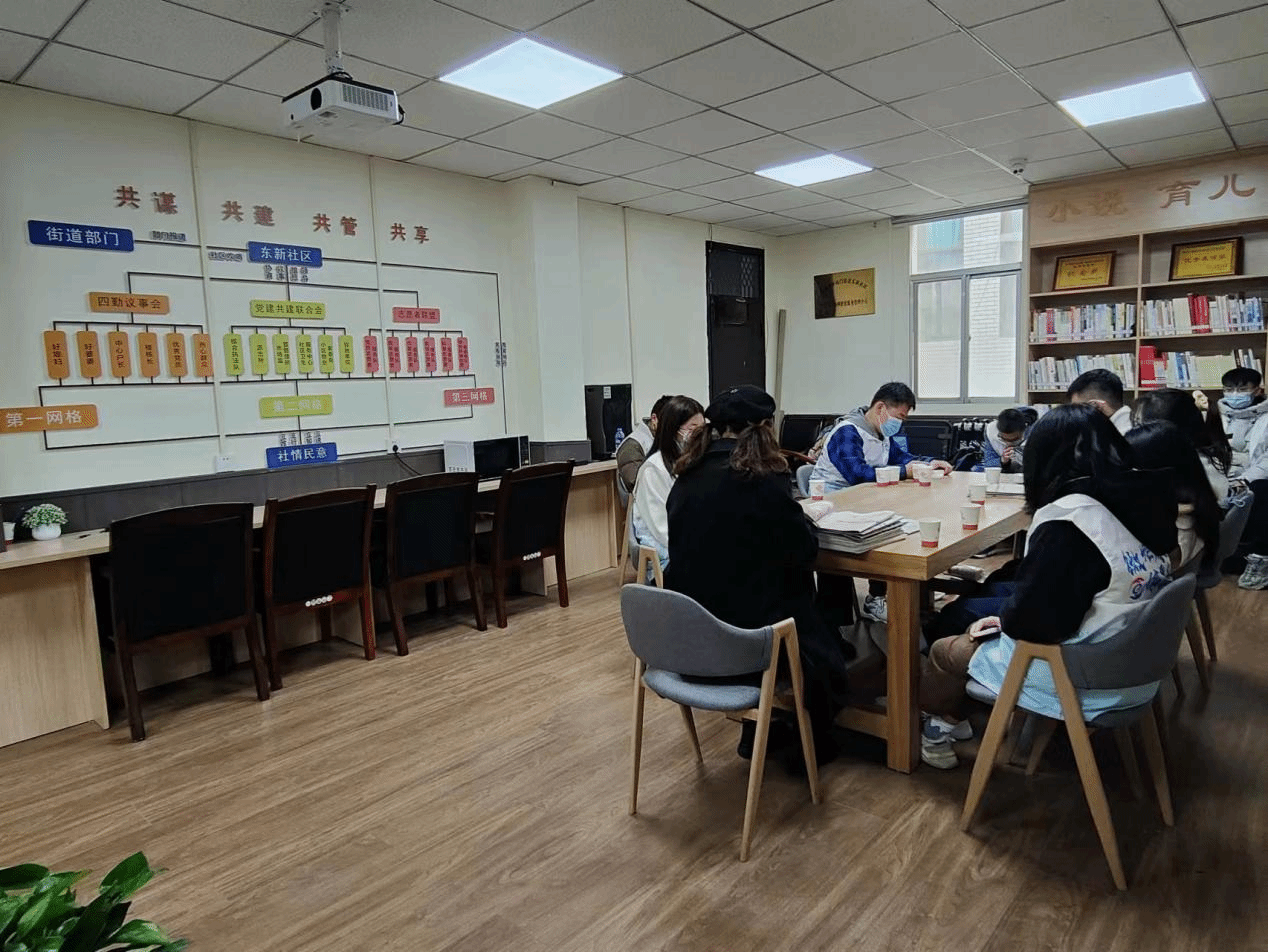 3月18日中午,十二名志愿者抵达新城区东新社区并对其进行初步的了解,在社区副书记朱艺文的介绍下,同学们初步了解到了六户老人的家庭基本情况,并结合老人的性格和身份特点分为三个小组。