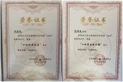担任学生三维设计协会会长期间,遵循“致敬技术,追求卓越”的协会宗旨,带领协会获评“知行计划全国优秀大学生社团”“五星级学生社团”“五四红旗团支部”“抗疫青年先锋队”以及确立为“省级团建样板支部”,他也获评“知行计划全国优秀大学生”“十佳社团之星”。