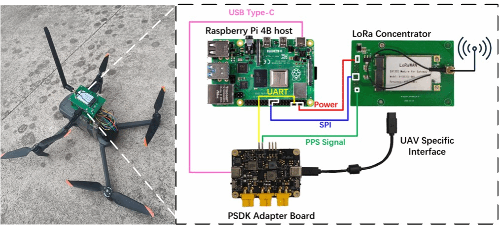 该系统利用无人机的机动性、高度优势以及遥控器的中继特性,有效提升LoRaWAN网络覆盖范围、通信可靠性;LoRaWAN网关与无人机高度集成,基于无人机负载实现网关供电、时间同步、GPS信息获取等功能,并支持GPS拒止环境下的终端定位;该系统能够接入已经部署的LoRaWAN商用网络,形成“高低搭配”的“地空一体化”LoRaWAN网络,显著提升系统的应用可扩展能力;已申请国家发明专利1项。