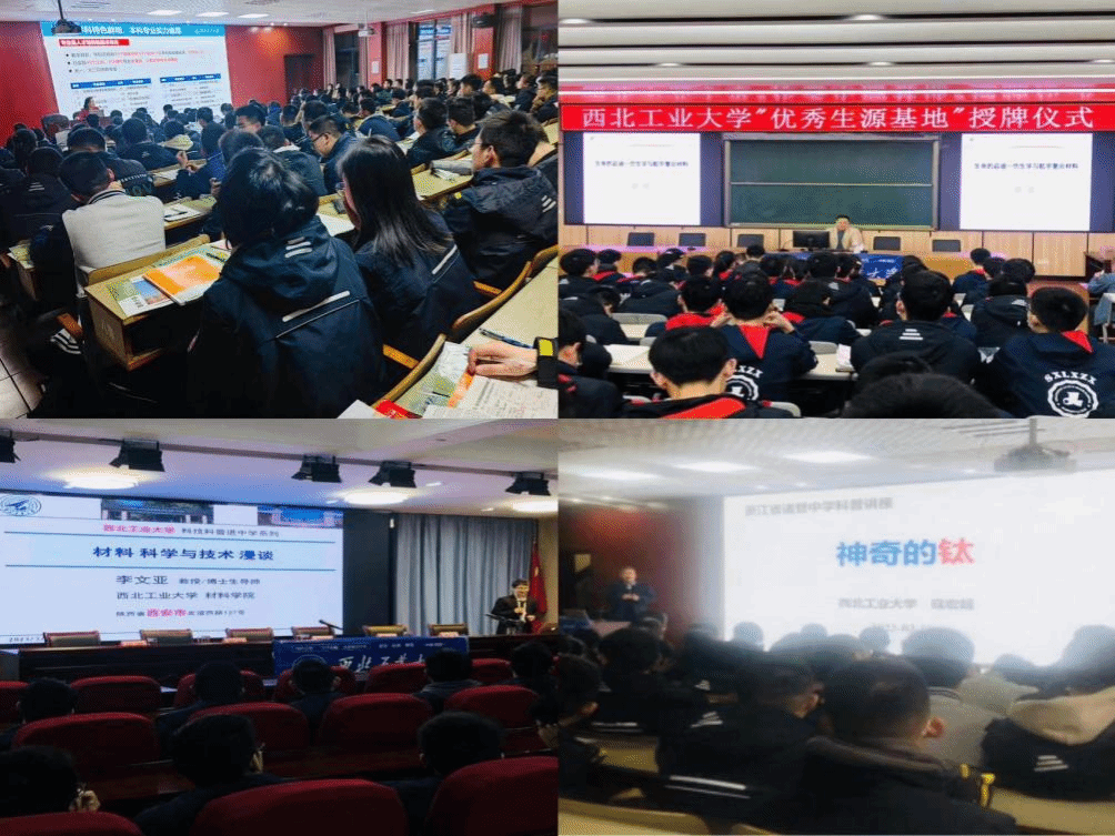到访中学期间,我校材料学院胡锐、李文亚、寇宏超三位教授分别为鲁迅中学、柯桥中学、诸暨中学学生做了题为《生命的启迪—仿生学与航宇复合材料》、《材料科学与技术漫谈》、《神奇的钛》的科普报告,三场报告引用一代材料、一代飞机等代表性案例,鼓励学生们要善于辨别和思考,注重基础知识的学习,培养与时俱进的创新思维能力,学生认真聆听,现场氛围活跃、掌声不断。