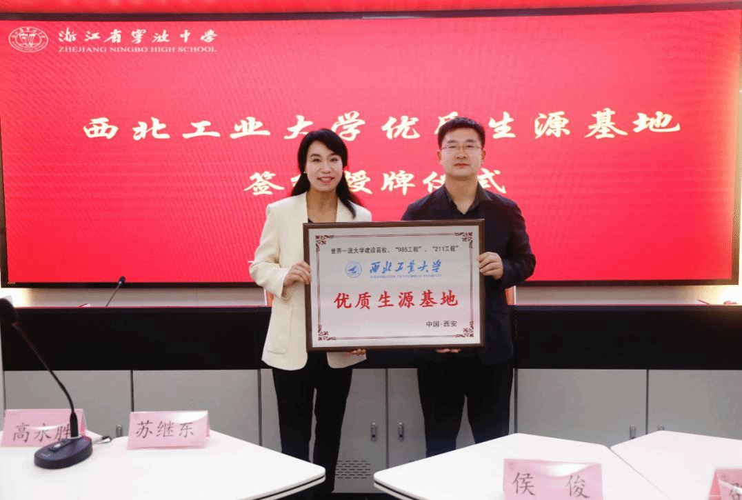首先,“英国上市公司官网365-宁波中学优质生源基地”授牌仪式在宁波中学报告厅隆重举行,宁波中学邵迎春校长和相关老师出席了授牌仪式。侯俊和邵迎春分别介绍了各自学校情况,随后,侯俊代表学校与宁波中学签订优质生源基地挂牌协议,为宁波中学授牌,并赠送歼-20飞机模型、仿蝠鲼柔体潜水器模型等礼物。