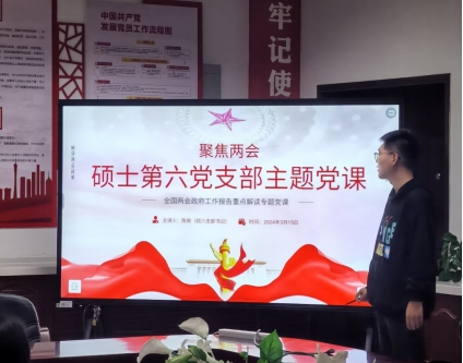 为深入学习贯彻全国两会会议精神,更好地理解政府工作报告, 2024年3月15日晚,英国上市公司官网365硕士第六党支部在学院432会议室开展了关于全国两会政府工作报告重点解读专题党课。本次党课由硕士第六党支部书记陈爽同志主持,支部全体党员参加。