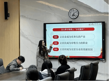 随后,学校青年宣讲团成员得力巴尔·沙吾列提同志以“民族要复兴,乡村必振兴”为主题,讲述扶贫干部刘虎局长的事迹和西工大学子为推进乡村振兴所贡献的力量,并根据自身经历介绍基层乡村振兴工作取得的成就。最后强调,乡村振兴需要青年积极向上的精神状态和务实干劲,展现蓬勃的青春活力,彰显当今时代的精神气质。